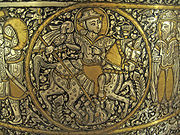 On nomme en Europe «arts mineurs» des domaines qui font partie des arts décoratifs. Cependant, en terres d'Islam comme dans de nombreuses civilisations extra-européennes ou anciennes, ces médias ont été beaucoup utilisés à des fins plus artistiques qu'utilitaires et portés à un point de perfection qui interdit de les classer comme artisanat[86]. Ainsi, si les artistes islamiques ne s'intéressent pas à la sculpture pour des raisons essentiellement religieuses[87], ils font quelquefois preuve, selon les époques et les régions, d'une inventivité et d'une maîtrise remarquables sur ces différents terrains[88] avec les arts du métal, de la céramique, du verre, de la pierre taillée (cristal de roche surtout mais également pierres dures comme la sardoine), du bois sculpté et de la marqueterie, de l'ivoire, ...