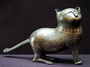 De grandes rondes-bosses, généralement plutôt rares en terre d'Islam[39], voient aussi le jour. En métal, elles servent d'aquamaniles ou de bouches de fontaines[40] en pierre, elles soutiennent par exemple la fontaine aux lions de l'Alhambra.