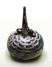 Du verre, transparent ou opaque, est aussi produit, décoré par soufflage dans un moule, ou ajouts d'éléments[31]. On connaît plusieurs exemples de verres taillés, dont le plus célèbre est probablement le bol aux lièvres, conservé au trésor de Saint-Marc de Venise[32], et des décors architecturaux dans ce matériau ont été mis au jour à Samarra.
