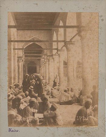 Au cours du mois de Ramadan 365 (octobre 975, calendrier chrétien), le Grand juge d'Égypte, Abû al-Hassan, assis dans la cour de la mosquée, enseigne «Al-Ikhtisâr», un ouvrage juridique chiite, devant une grande audience. Ce cours est le départ de l'enseignement dans la mosquée. Si ces séances avaient comme but l'enseignement des sciences islamiques, elles prenaient quelquefois des orientations politiques.